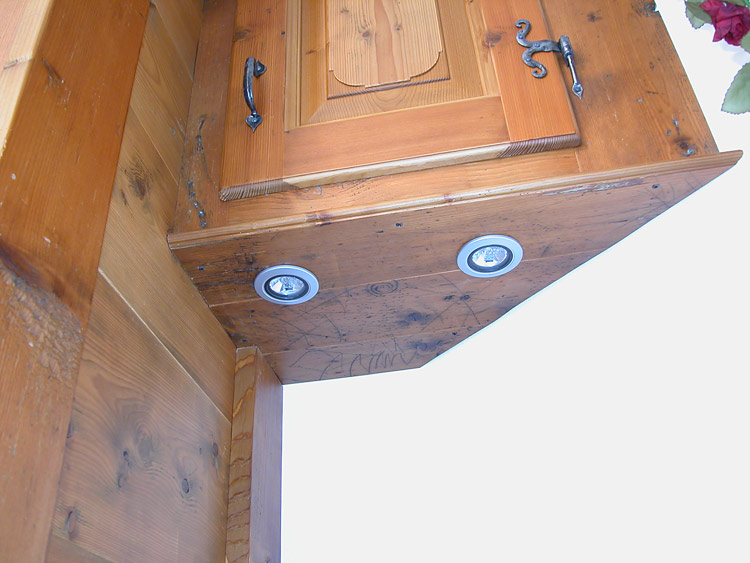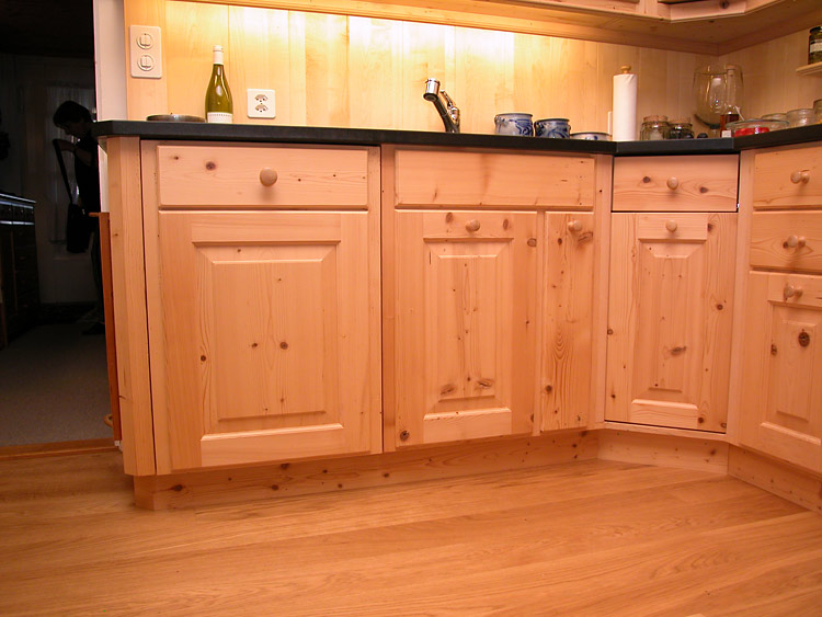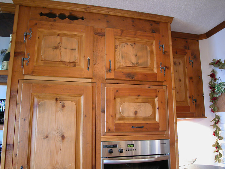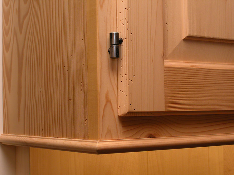 Die Fronten werden bei dieser Ausführungsart aus echtem Fichten-Altholz hergestellt. Die Sichtfläch-en sind in der ursprünglichen (mechanisch nicht bearbeiteten) oder mit einer nachbearbeiteten Oberfläche erhältlich. Beide Ausführungen erhalten als Fleckenschutz einen matt glänzenden Überzug.